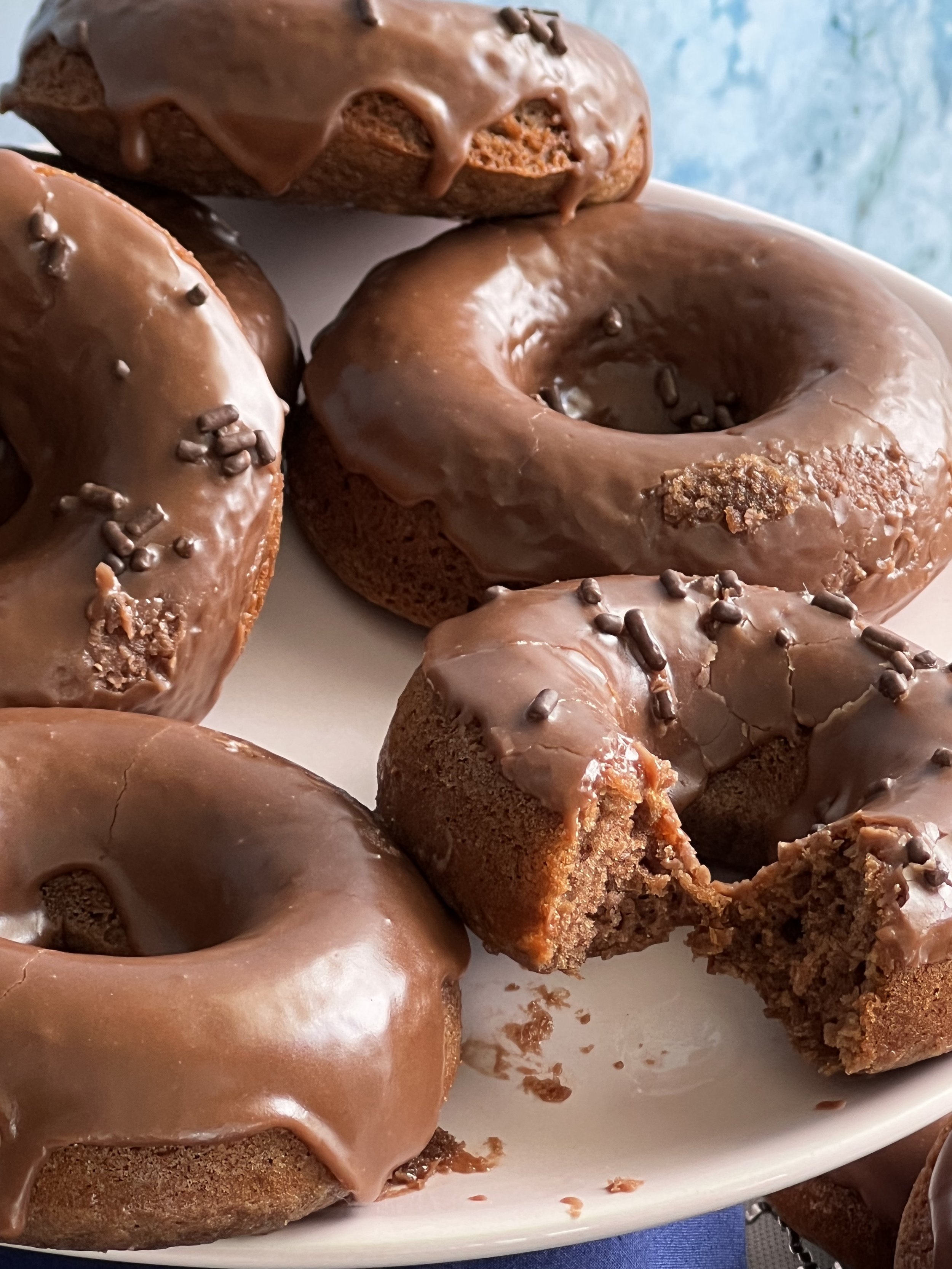 Hornee a 350°F durante 9-10 minutos o hasta que al insertar un palillo de madera en la dona, éste salga limpio. Retire del horno y enfríe en la fuente durante aproximadamente 5 minutos, luego retire las donas y transfiéralas a una rejilla para que se enfríen.